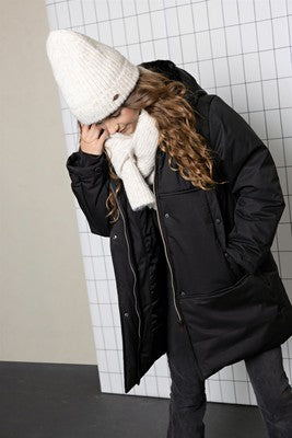 Stoer, stijlvol en super comfortabel – de NoBell' Belvine Winterjas zwart is jouw ideale jas voor koude dagen. Deze jas is gemaakt van een mix van functionele waterafstotende stof en gevoerd met een zachte fur bij de body en capuchon, wat zorgt voor een perfecte balans tussen stevigheid en zachtheid.
