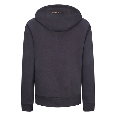 Deze comfortabele hoodie van Retour Jeans is uitgevoerd in een zachte sweatkwaliteit en voorzien van een subtiele artwork boven de buidelzak. De capuchon en geribde boorden maken het geheel af. Perfect voor een relaxte look en ideaal om te dragen op een jogger of casual broek.