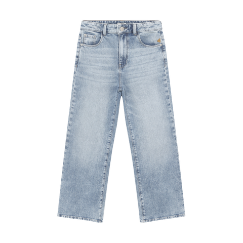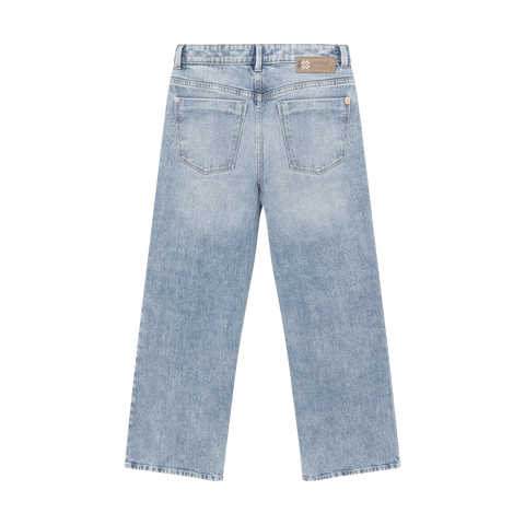 Deze extra wijde jeans in medium denim is gemaakt voor meiden die houden van een relaxte en zelfverzekerde denimstijl. De extra wijde pijpen zorgen voor een krachtig silhouet dat er trendy uitziet en makkelijk te dragen is. De jeans is wijd bij de heupen, dijen, knieën en enkels, heeft een knoop- en ritssluiting en een verstelbare tailleband, waardoor comfort en een moderne stijl perfect gecombineerd worden.