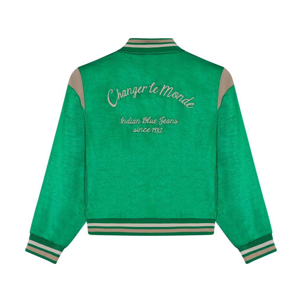 Deze sportieve jas van Simply Green geeft een stijlvolle touch aan casual outfits. Met een satijnen afwerking en een opvallende print op de achterkant is hij gemakkelijk over tops of T-shirts te dragen voor dagelijks gebruik. Lichtgewicht en comfortabel, ideaal voor actieve dagen en casual uitjes. De elegante satijnen stof, het grote borduursel op de achterkant en het kleine borduursel op de borst maken deze veelzijdige jas compleet.