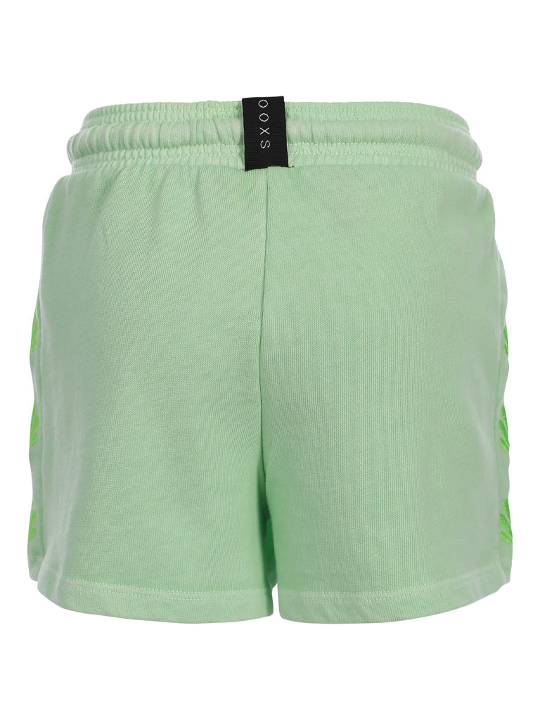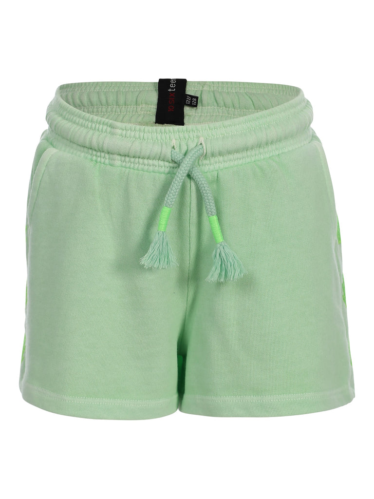- Cool short in een uni licht groene kleur die perfect matcht in deze drop.