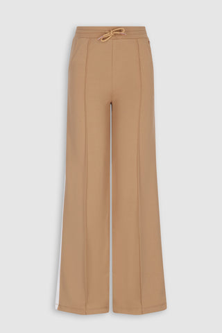 Sylvie Palazzo broek van Nobell' voor tienermeiden. Deze bruine jersey broek met contrast streep op de zijnaden en pintuck op het voorbeen geeft elke dag een stijlvolle look. Perfect voor een trendy, casual vibe.